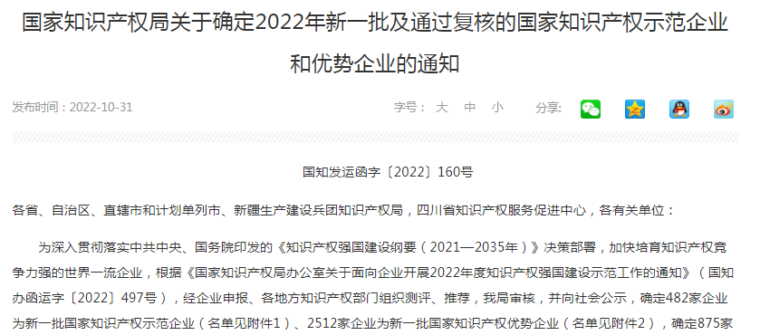 热烈祝贺乐鱼平台网页版-乐鱼leyu(中国)被评为国家知识产权示范企业