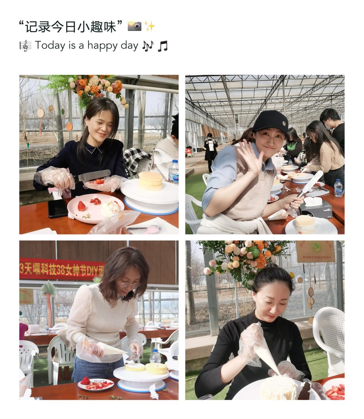 春风有信,花开有期,人间芳菲三月天,相约甜蜜女神节,为纪念“三八”国际劳动妇女节113周年,进一步丰富女员工的节日文化生活,加强交流,增进友谊。公司于2023年3月8日下午在草莓园开展了以“芳菲三月,共享甜蜜”为主题的女神节DIY草莓蛋糕及采摘蔬菜活动,为参与活动的全体女员工送上了一份甜蜜的节日礼物。