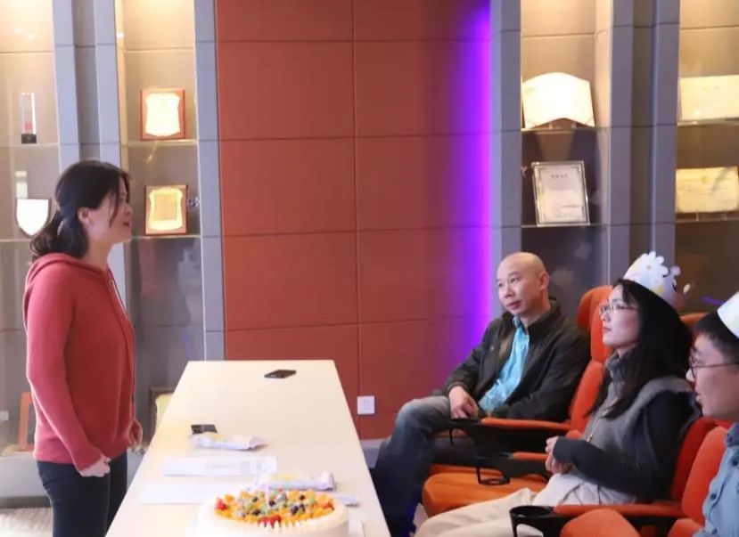 生产中心总监敬容主持了生日会。她指出,天堰公司非常关心员工工作和生活,公司的生日会得到了精心策划,每次生日会都派出至少一位高管出席。