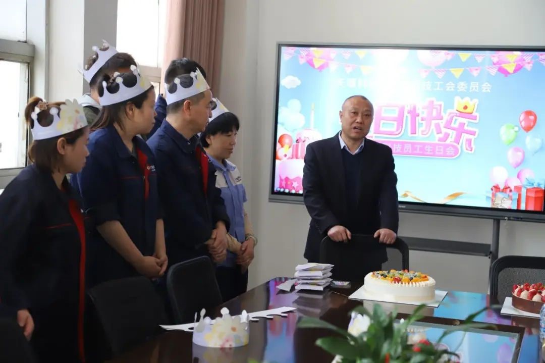 工会主席王志永代表天堰工会给寿星们致贺词,他首先祝福大家生日快乐、家庭美满、工作顺利。接着他强调,由于天堰所有职工在这些年的努力奋斗和辛勤付出,使公司业务逐年提高,人员规模也在慢慢增加,工会的力量也得以壮大,使得工会有更多的人员和经费为广大员工组织更丰富的活动;每年的生日,是我们一年中非常有意义的一天,因此,把生日会办好,是今年公司工会的一个重要任务;与去年相比,今年的生日会有了明显变化,组织更严谨了,活动更丰富了,蛋糕更大更美味了,对员工的吸引力也更高了;借助生日会的机会,不同部门的职工可以聚在一起,相互认识,相互了解,更可以提升公司的凝聚力。